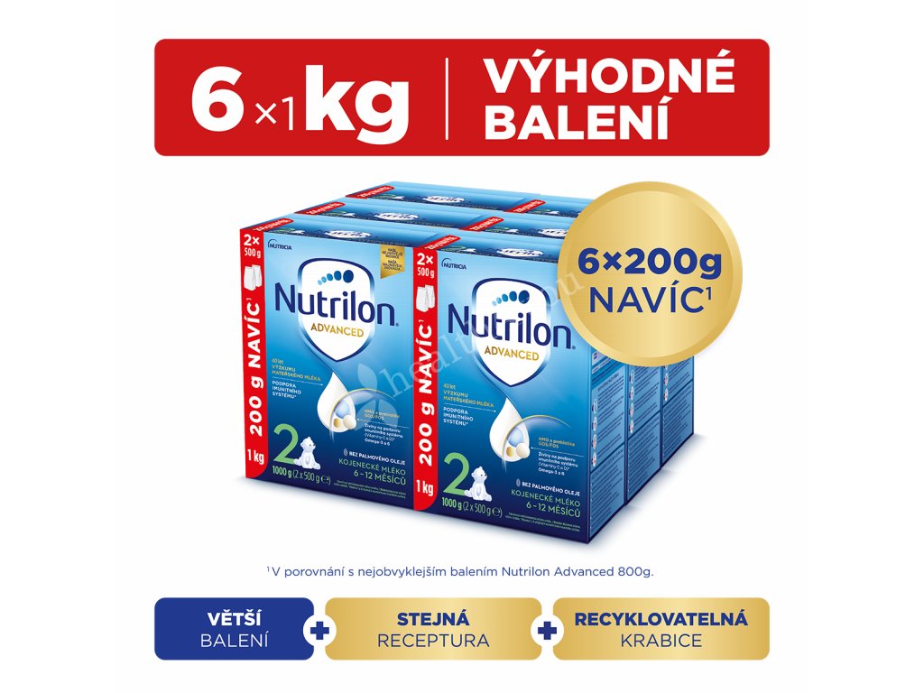 Kojení je nejlepší způsob výživy kojenců. Nutrilon 2 Advanced je určený pro kojence od uk. 6. měsíce. nemá se používat jako náhrada mateřského mléka během prvních 6 měsíců. Není vhodný jako jediný zdroj výživy. Rozhodnutí o zahájení podávaní příkrmů, včetně výjimky z pravidla věku 6 měsíců, by mělo být přijímáno jen na základě doporučení lékaře nebo osoby kvalifikované v oblasti výživy a farmacie a v závislosti na individuálních potřebách kojence. Podporujeme doporučení WHO - plné kojení v prvních 6 měsících věku a pokračování až do 2 let a dále, spolu se zaváděním bezpečné a vhodné doplňkové stravy. Připravenou stravu spotřebujte do 2 hodin, poté zlikvidujte. Neohřívejte v mikrovlnné troubě, hrozí opaření dítěte. Nikdy nepřidávejte do výživy více odměrek, než je stanoveno, ani cokoliv jiného. Dohlédněte na hygienu prvních zoubků. Pro zdraví kojenců je důležité dodržovat návod na přípravu a uvedená doporučení.