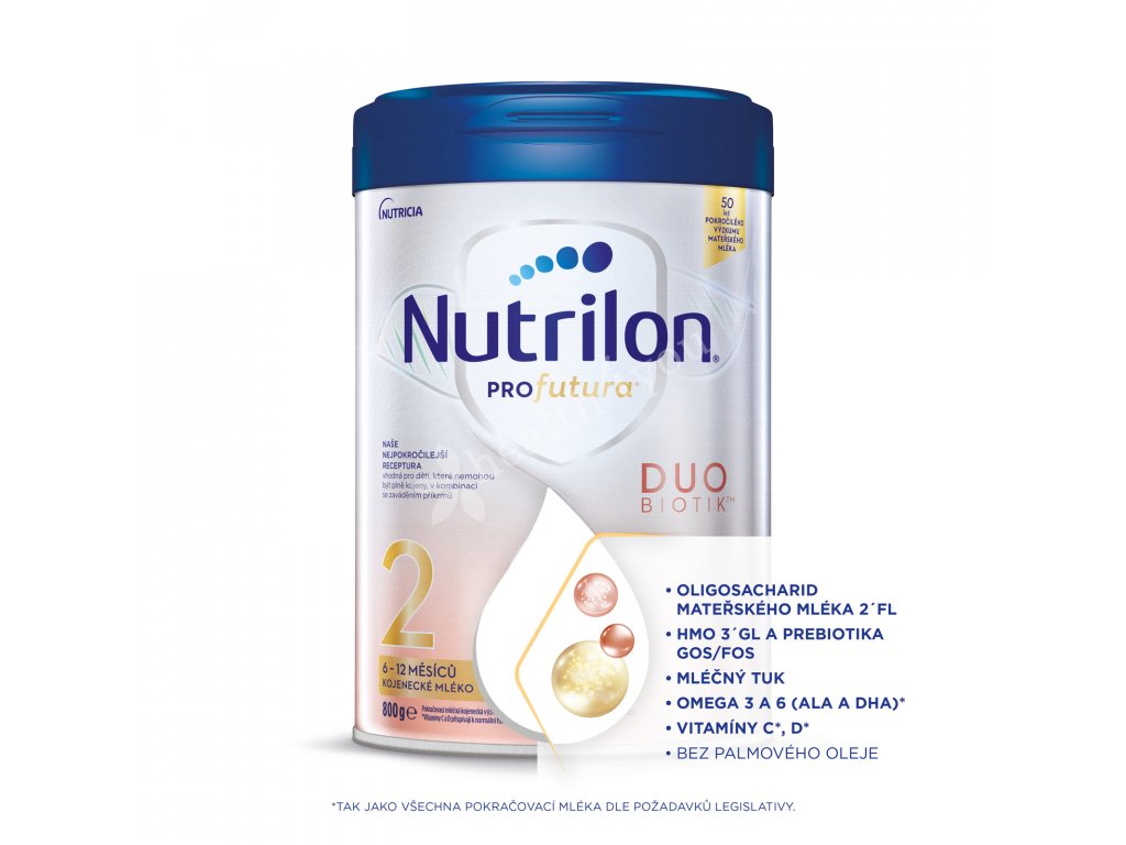 Potravina pro zvláštní výživu kojenců starších 6 měsíců. Nutrilon® Profutura® DUOBIOTIK™ 2 má být pouze součástí smíšené a vyvážené stravy, nemá se používat jako náhrada mateřského mléka během prvních 6 měsíců života. Rozhodnutí o zahájení podávaní příkrmů, včetně výjimky z pravidla věku 6 měsíců, by mělo být přijímáno jen na radu nezávislých osob kvalifikovaných v lékařství, výživě nebo farmacii nebo jiných odborníků odpovědných za péči o matku a dítě, v závislosti na individuálním růstu a rozvojových potřebách konkrétního kojence. Pro zdraví kojenců je důležité dodržovat návod na přípravu a uvedená doporučení. Podporujeme doporučení WHO - plné kojení v prvních 6 měsících věku a pokračování až do 2 let a dále, spolu se zaváděním bezpečné a vhodné doplňkové stravy.